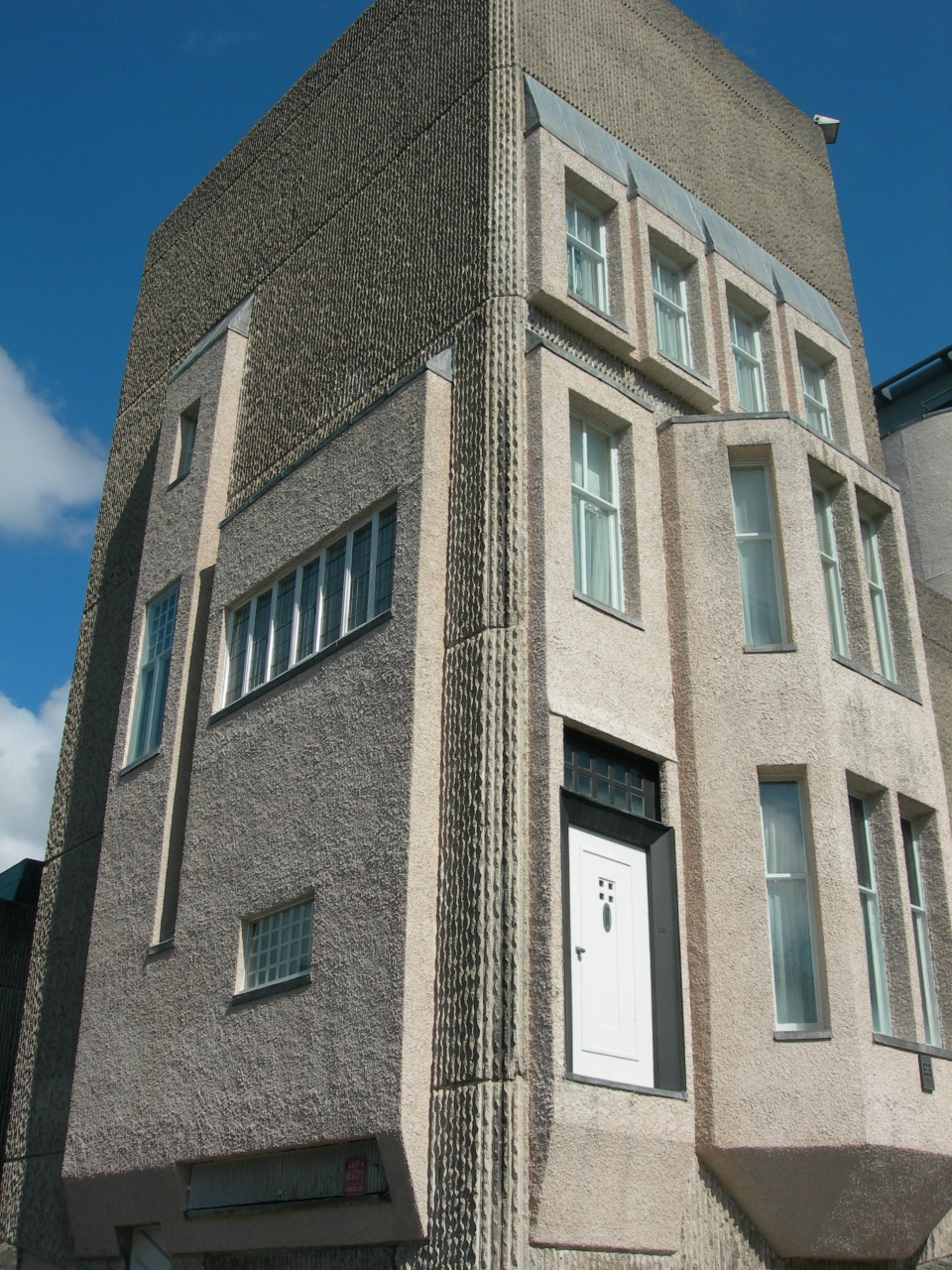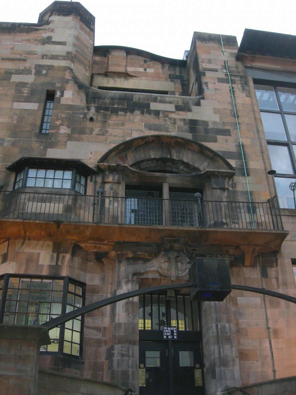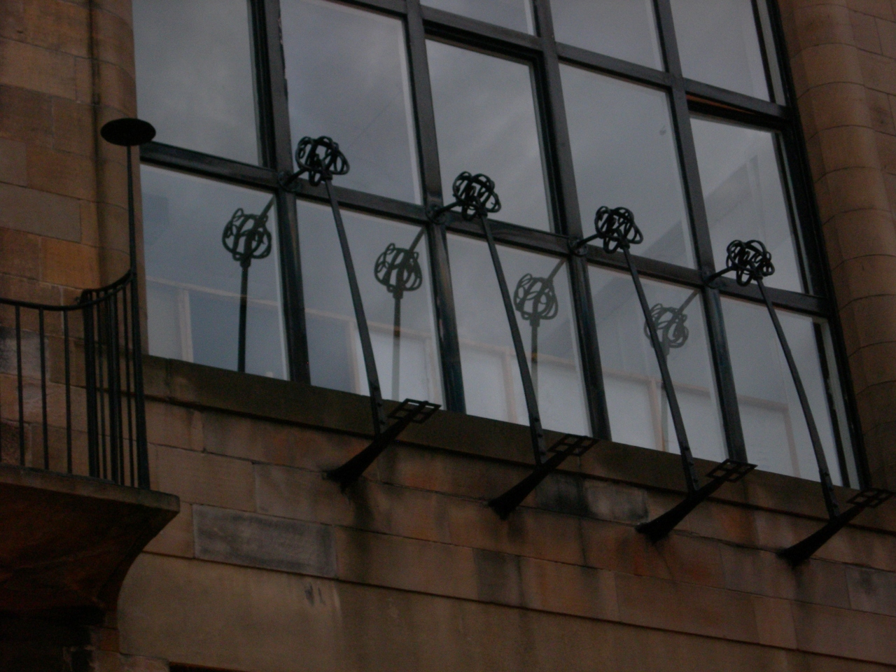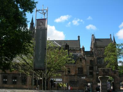 グラスゴーに行ったら是非足を運んで頂きたいのが、グラスゴー大学にあるハンタリアン美術館。そこにマッキントッシュが住んでいた家が公開されています。3階建ての家はそれぞれ部屋ごとに装飾が異なり、白い壁の部屋は家具も白で統一され、紫のバラがアクセントをつけています。茶で統一されたリビングは楢のテーブルに、直線的なイスが配置され、シックな部屋となっていました。3階の寝室は現代風なストライプのデザインのすっきりした部屋でした。イスはもちろんのこと、照明器具やドア、鏡、タンスなどどれもステキ。又掛けてあった奥様の絵もよかったです。