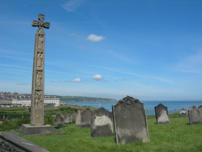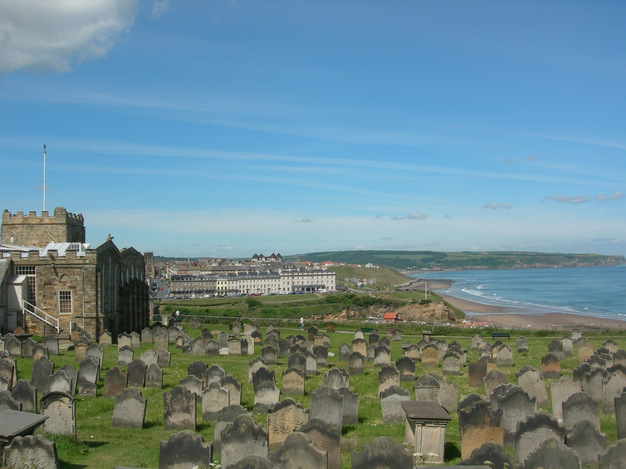 ヨークからノース・ヨーク・ムーアズ国立公園のヒースの群生する丘を横切ると、北海を見下ろす丘の街ウイットビーに着きました。キャプテンクック記念像の対岸にある聖メアリー教会まで階段を登っていくと、そこには敷地いっぱいにお墓が並んでいて、敷石までお墓になっていました。さすが「ドラキュラ」のインスピレーションを与えただけの事はあります。続きに修道院があって、なかなかの見所でした。