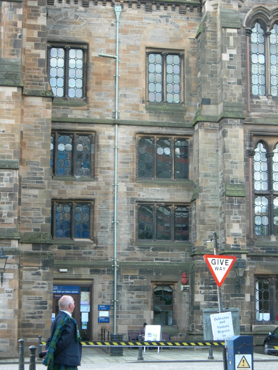 グラスゴー大学も歴史を感じさせる立派な建物で、丁度卒業式だったらしく、盛装した人々がいました。中にはキルトに身を包んだ老年の方にお会いしましたが教授でしょうか。- 旅行時期
