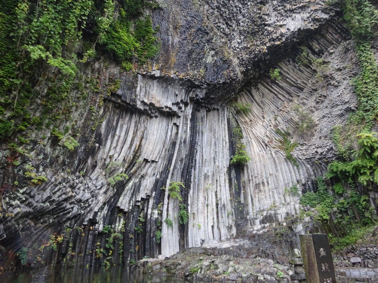 玄武洞、青龍洞、白虎洞、朱雀洞(南、北)があり、一番凄いのが青龍洞。水面に映る姿もいいですね。柱状節理がとてもきれいに見えます。昔は採掘して庭石などに使用していたそぷですが、今は国の天然記念物。白虎洞は横向きの柱状節理。いづれもパワースポットだそうです。