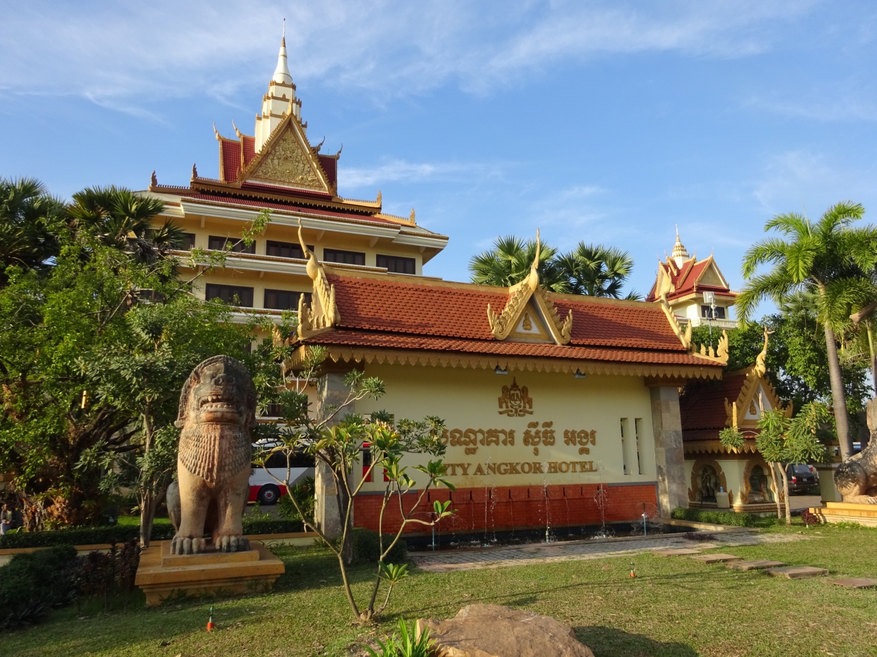 なかなかきれいなホテルで、朝ごはんを食べるホールからアンコール遺跡風なお庭が見渡せて綺麗です。リンスがないだけで、ドライヤーも付いていました。サンダルも付いていました。部屋も広くバスタブも付いていて快適でした。
