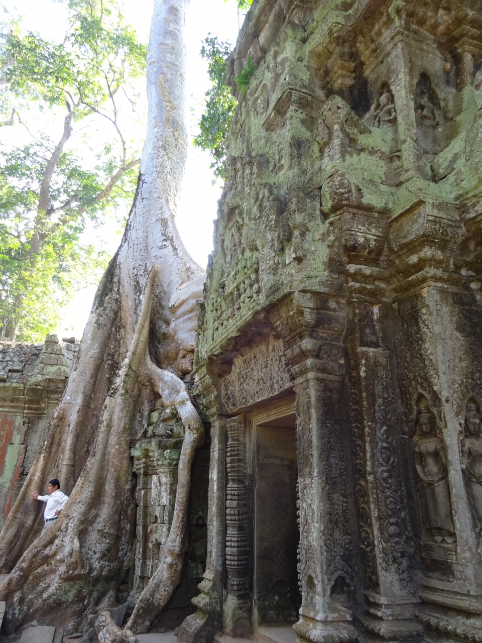 ジャヤヴァルマン7世が母の為に造った仏教僧院が後にヒンドゥ教寺院に改造されたそうです。スポアンに絡まれて押しつぶされそうな寺院ですが、それが神秘的です。自然の凄さを感じてしまいます。崩れてはいますが、デバターはにっこり微笑んでいました。