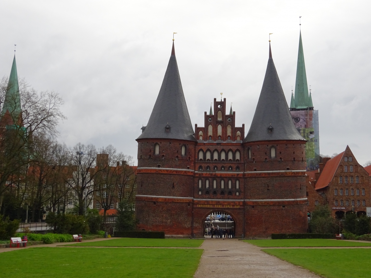 ハンザ同盟で栄えたリューベック。その旧市街の降り口に象徴として1469~1477年に造られた門で、北ドイツ特有のレンガ造りが重厚で立派です。ただレンガの重みに耐えかねて建物の一部が陥没し、塔が傾いていました。