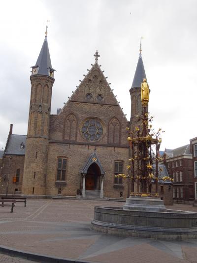 誰もいないビネンホフは、あたかも中世にタイムスリップしたようです。一番古い建物が騎士の館。小さいですが国会議事堂だそうで、13世紀の建物。その周りに省庁が囲んでいてなかなかステキ。なにしろオランダは九州くらいの大きさの国なのでこの大きさで間に合うのでしょう。女王様も来られるとか。ホフエイファの池から観るビネンホフもきれいでした。