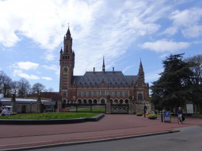 国際司法裁判所になっていて、とても綺麗な建物。今日はオープンしていなかったので、外から見学しました。ここで国際紛争を解決するのですね。横に資料館のようなものがあり、レースの襟の付いたガウンを着た小和田さんの写真もありましたよ。