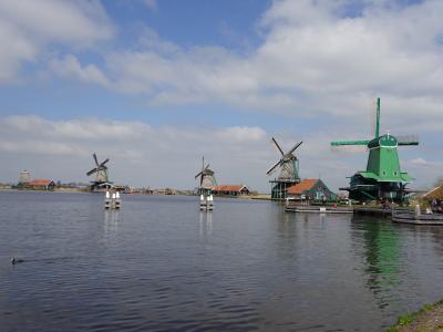 ここは風車を集めてきて明治村のようにしたところ。実際に製材所として使っている風車もあるようで昔はこんな風だったのね、と分かるようになっています。水路に建つ家もかわいいです。天気もいいし、きれいはきれいでした。