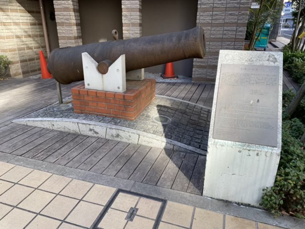 シルク通りでストラチャン商会跡地を発見して意気揚々と歩いているとありました。マンションの敷地の角に太い大砲が鎮座しているのはちょっとシュールでもありますね。開港広場にはもう少しスラっとした大砲がありましたが横浜にはもう一つ大砲があるようなのでまた出会うのが楽しみです。