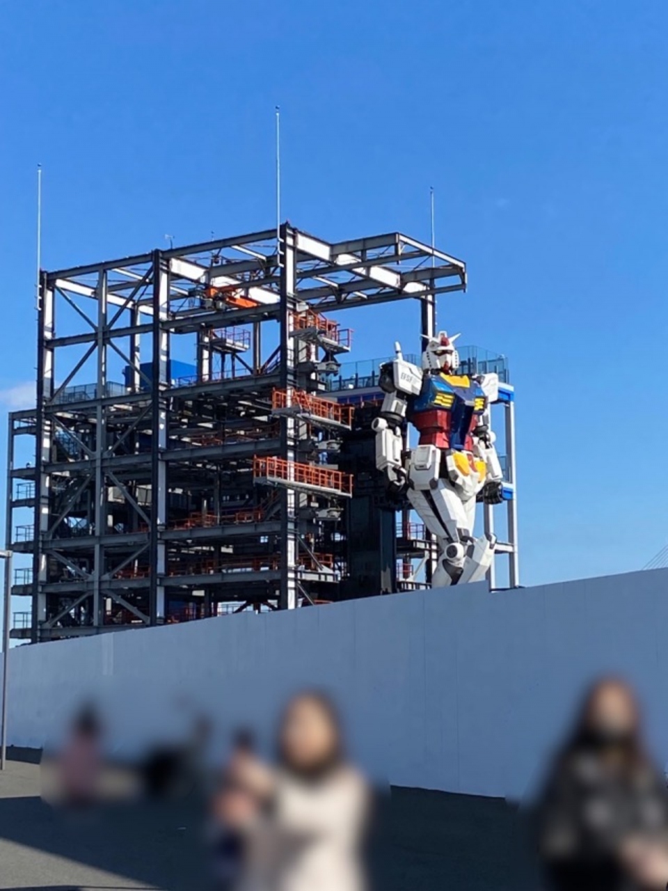 氷川丸の辺りからカラフルな工場みたいなのが見えたのであれがガンダムかと行ってみました。完璧にブロックされていて外からは見えないんだろうなと思っていましたがあっさりとガンダムの腿から上ぐらいが見えて拍子抜けしました。そして女子にも人気があるようなのも意外でした。