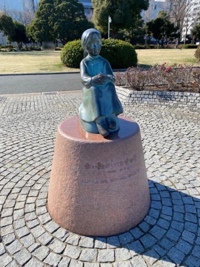 山下公園の中程にありますが山下公園は海沿いを海を見ながら歩くことが多いのでそれよりは内陸側にあるこの像はうっかりすると見逃してしまう事もありそうです。「赤い靴」の歌も最近はあまり聞こえてこないので知名度も落ちてしまっているかもですね。