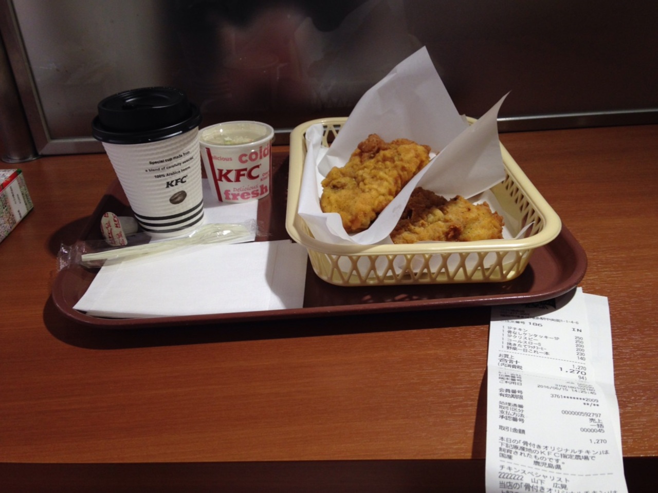 場所柄そんなに広くはなく、駅ビルの通路に面したレジで品物を受け取ったら通路沿いに歩いて飲食スペースに移動します。