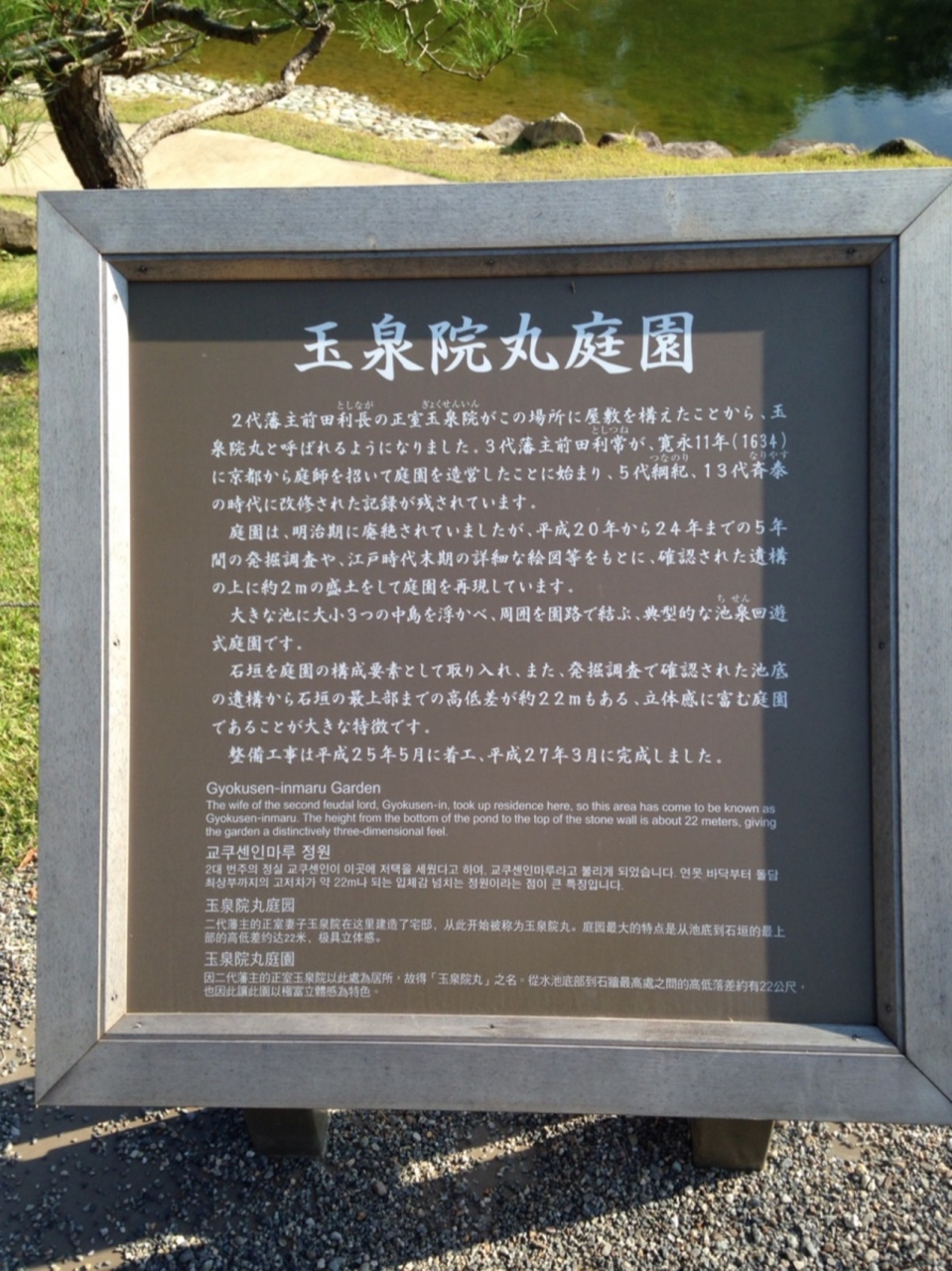 大きな池の周りを歩いたり中央の島に渡ったりできるの庭園なのですが、どうも作られたジオラマっぽいなと思っていたら2015年に新しく作られたものでした。