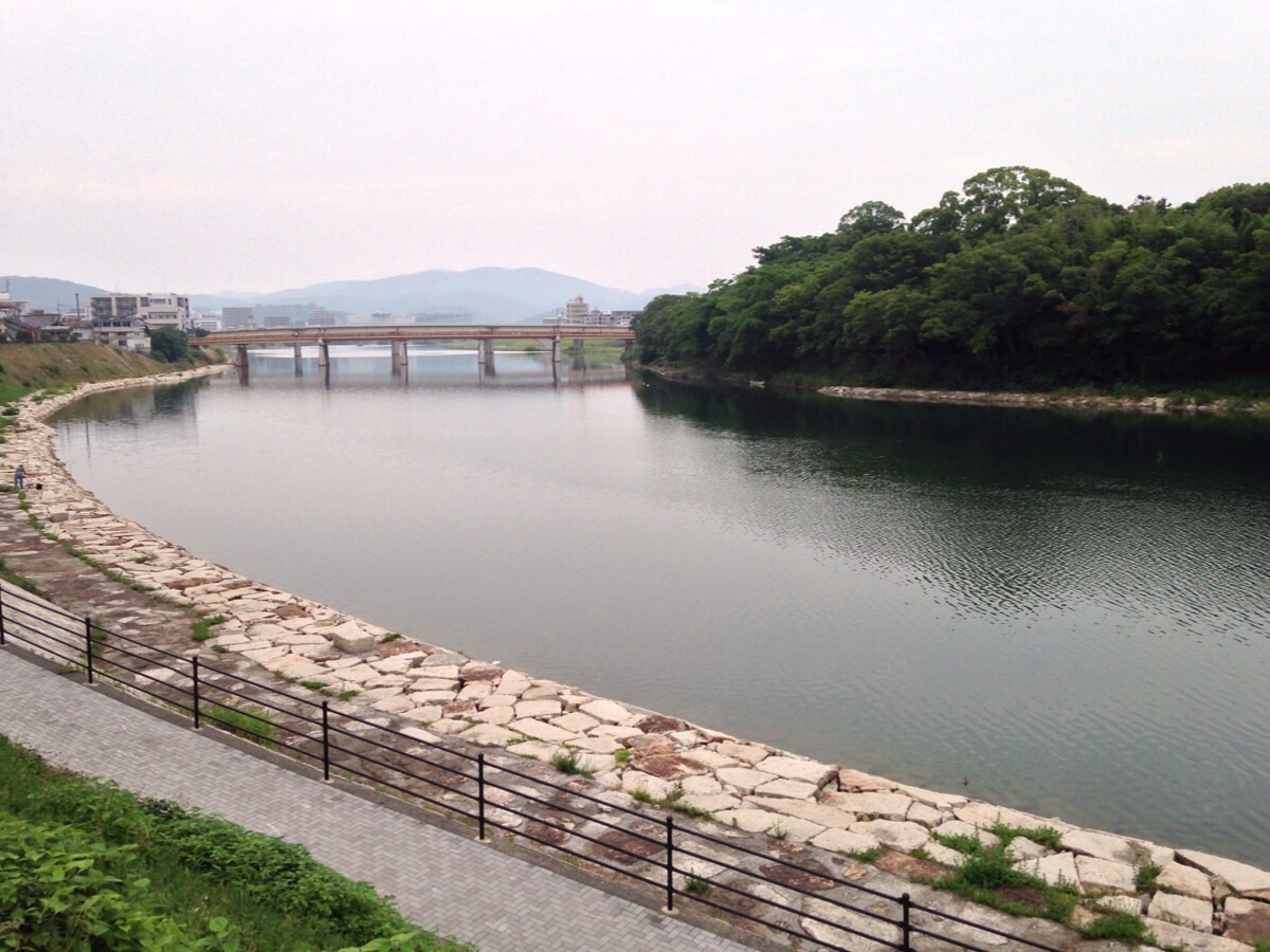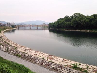 城下の交差点あたりから旭川沿いに城を見ながらそぞろ歩いて5分程度でしょうか。