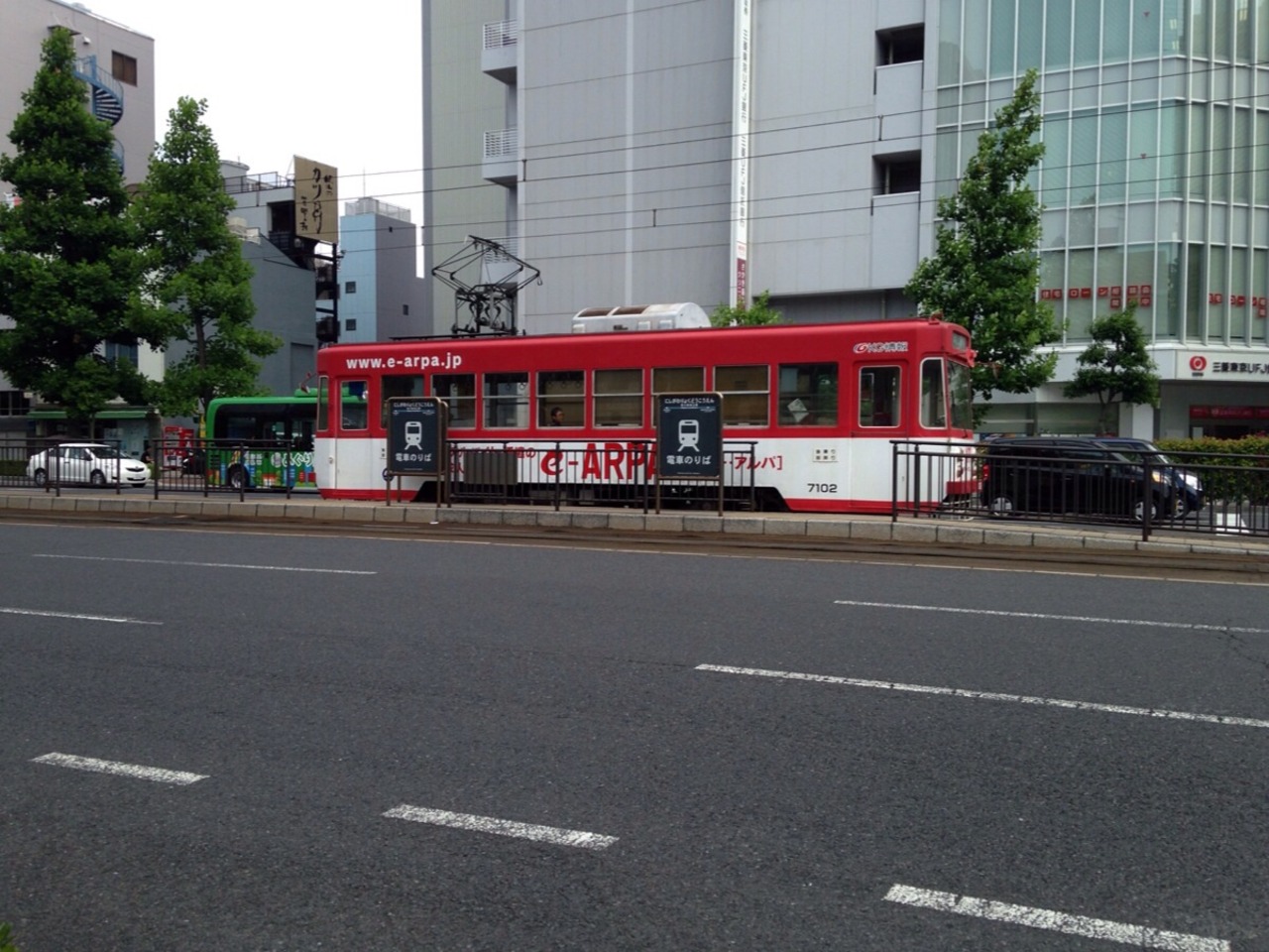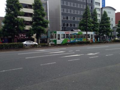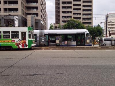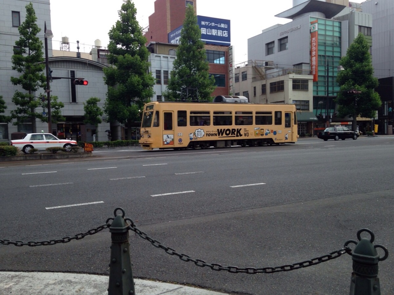 岡山駅から岡山城方面に至る桃太郎大通りを歩いていると色とりどりの路面電車を目にしました。
