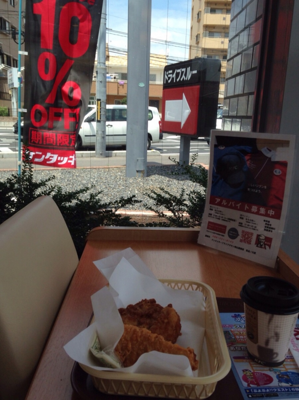辛いのと普通の1ピースずつ、クリスピー、フライドフィッシュでお腹いっぱい食べましたが、いつも思うのですがコーヒーのLサイズがあればよいのですが、、- 旅行時期