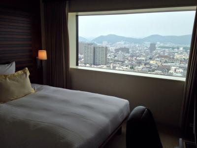 部屋の窓も横一面といった感じで遠くに岡山の山々が広がり、夜景よりも昼間の景色が素晴らしいです。