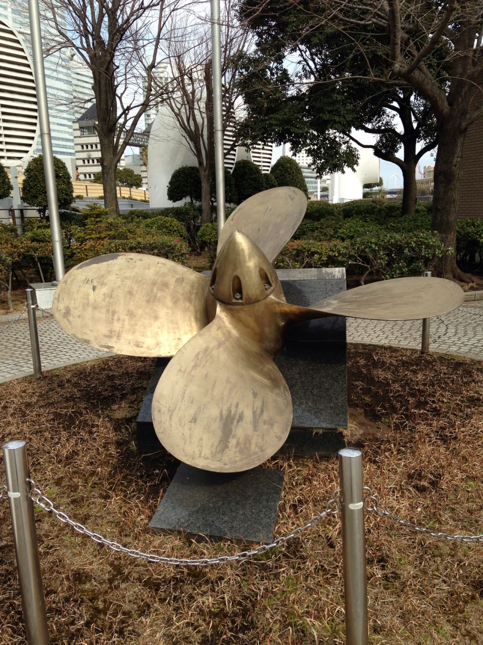 左舷の予備プロペラだそうですが直径約2.28mと割と小さいのだなと思いきや、重量は900kgもあるとのことです。- 旅行時期