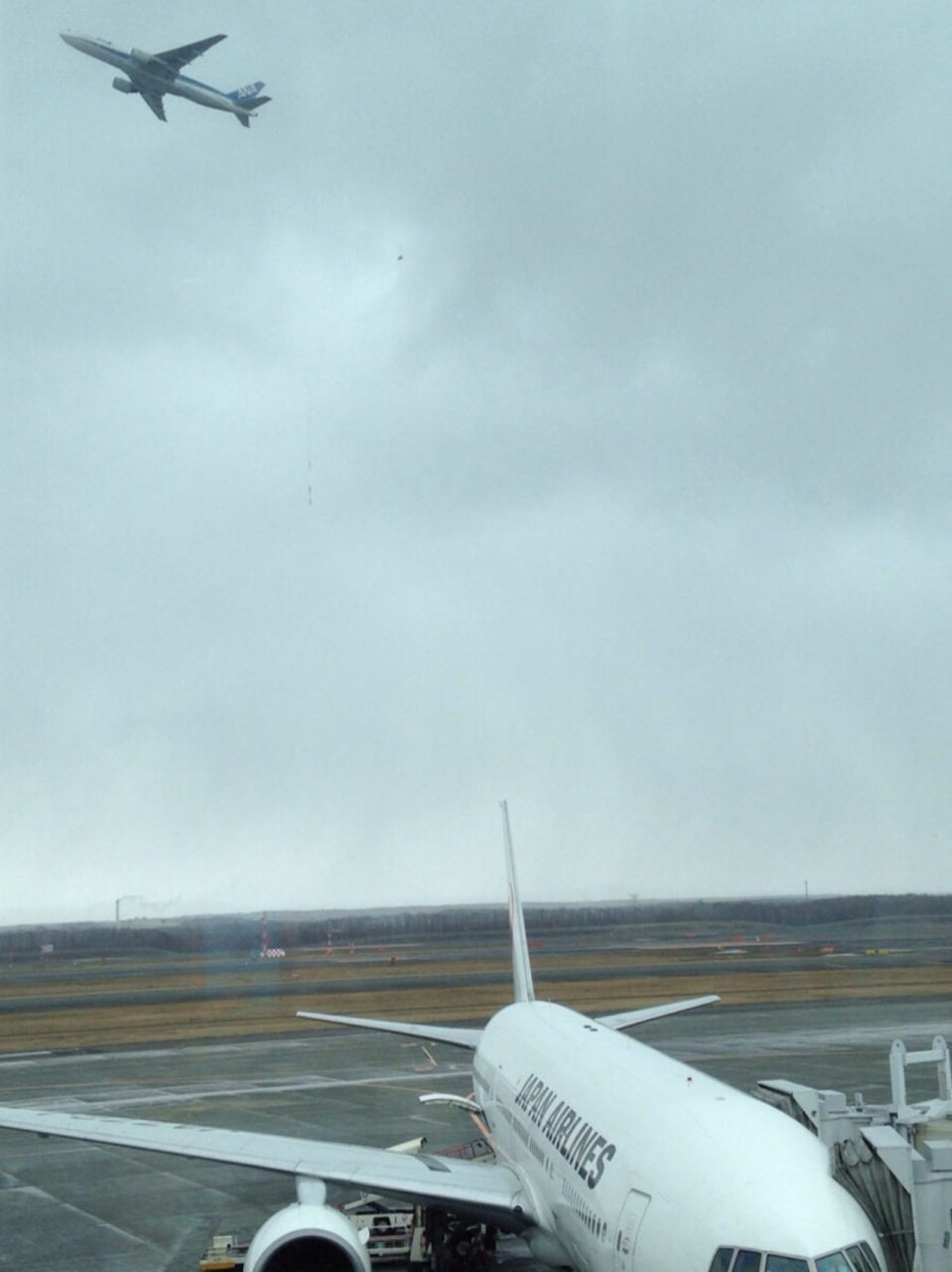 窓側に面した席にはパソコン用のコンセントがあり、ちょっとした仕事をしながら、飛行機が飛びたつときは慌ててスマホのカメラを構えました。