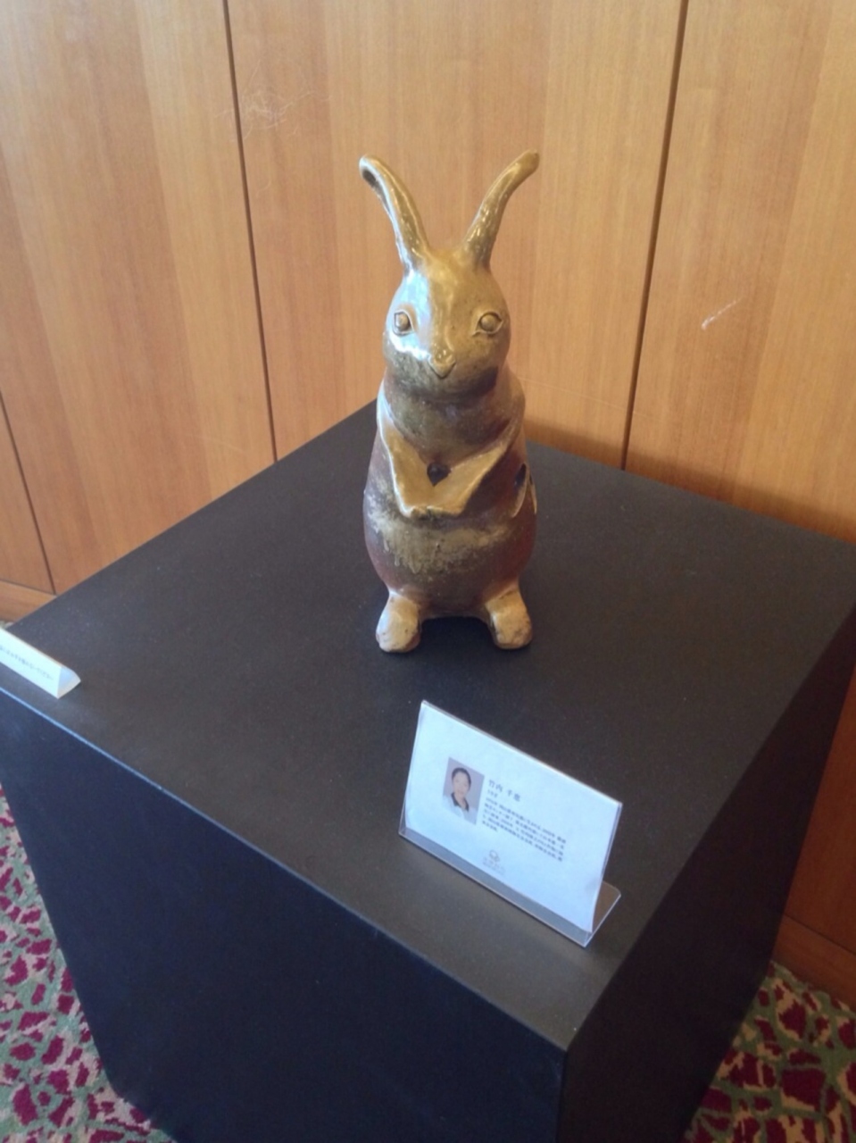 小学校会場は絵はいかにも小学生といったかんじで和むものでしたが、粘土や焼き物の立体物は見事でした。