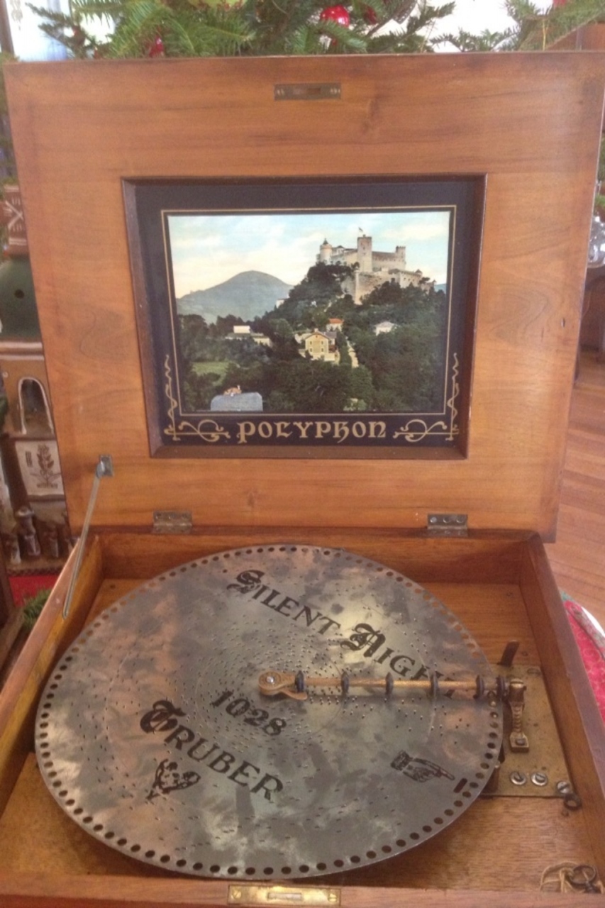 内部はクリスマス向けの飾り付けがされている時期で、大きなオルゴールらしきものも展示されていました。