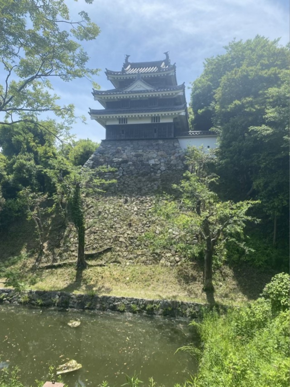 休憩した旧近衛邸から出てきて北側からお堀越しに西尾城を見てみました。この後お城の周りを一周しつつ内部も見学するつもりなのでいろいろな角度からお城を見られるだろうと思っていたのですが木々に邪魔されて意外にお城が見える地点は少なかったです。ここと西尾市資料館の入口近くからぐらいしかまともにお城の外観が見えず消化不良のような印象でした。