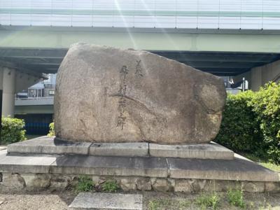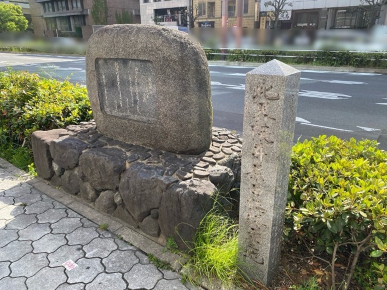 大手橋を東に渡って南下するとありました。きれいな長方形でもなく何かの形をしているのかというとそうでもなさそうで雑な碑にも見えますが天野屋利兵衛という人は忠臣蔵に出てくる商人で討ち入りに参加はしていないけれども武器を調達した人なのだそうです。忠臣蔵は詳しくないのですが各地で関連のスポットに出くわすので今度、忠臣蔵を見る機会があればしっかりと見たいと思います。