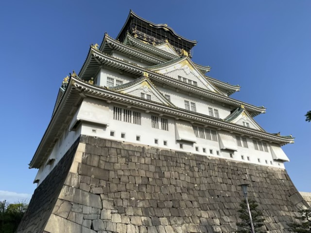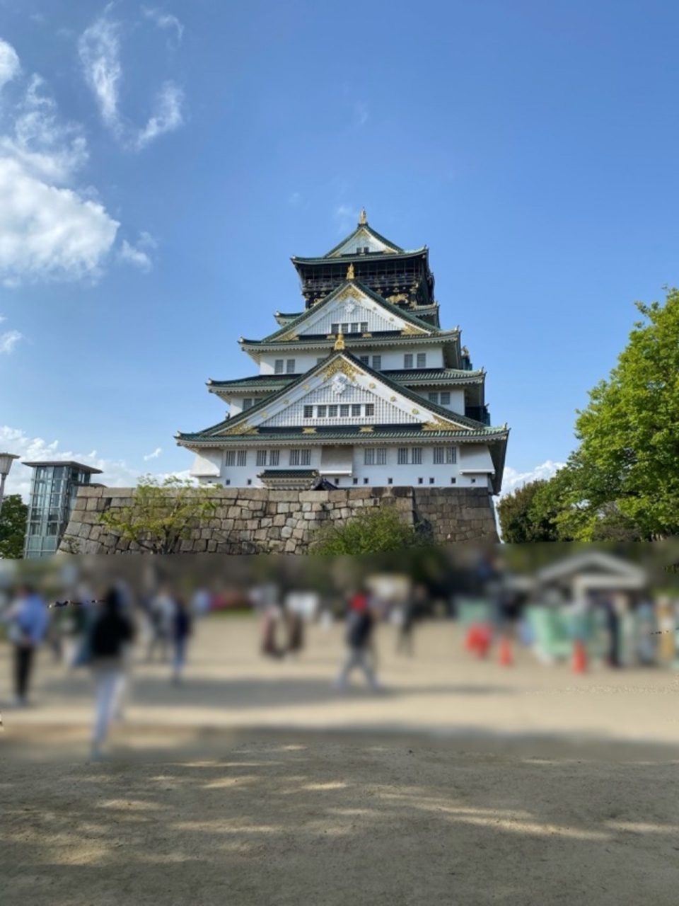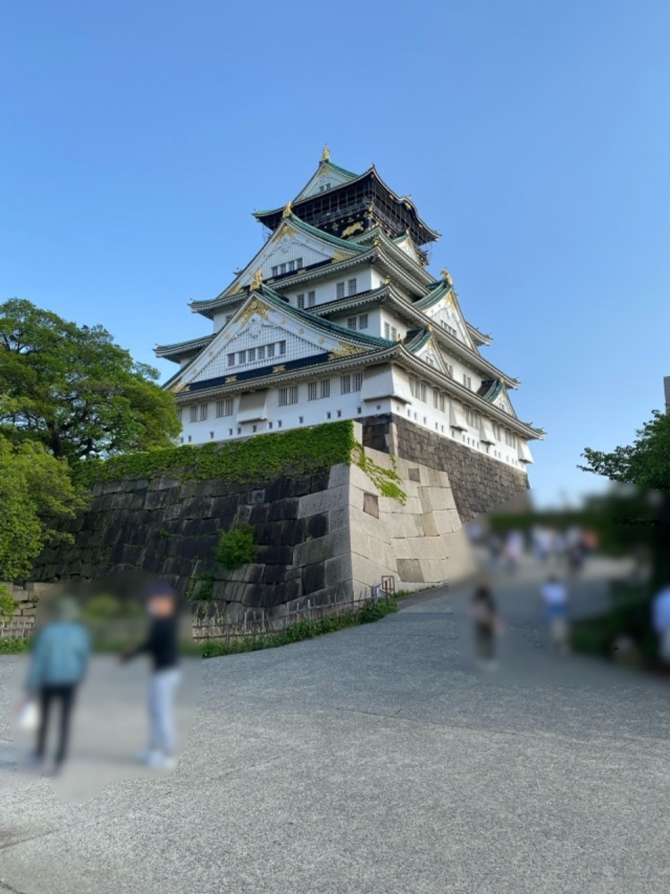 久しぶりに大阪城を訪れました。お堀にそびえる大きな石垣に毎度圧倒されますが冷静に見ると天守閣も大きな石垣に乗っていますね。鮮やかな白い外壁に金色の装飾もとても映えています。左側のエレベーターは見なかったことにして天守閣を前から横から後ろからと一通り見て充実した訪問となりました。