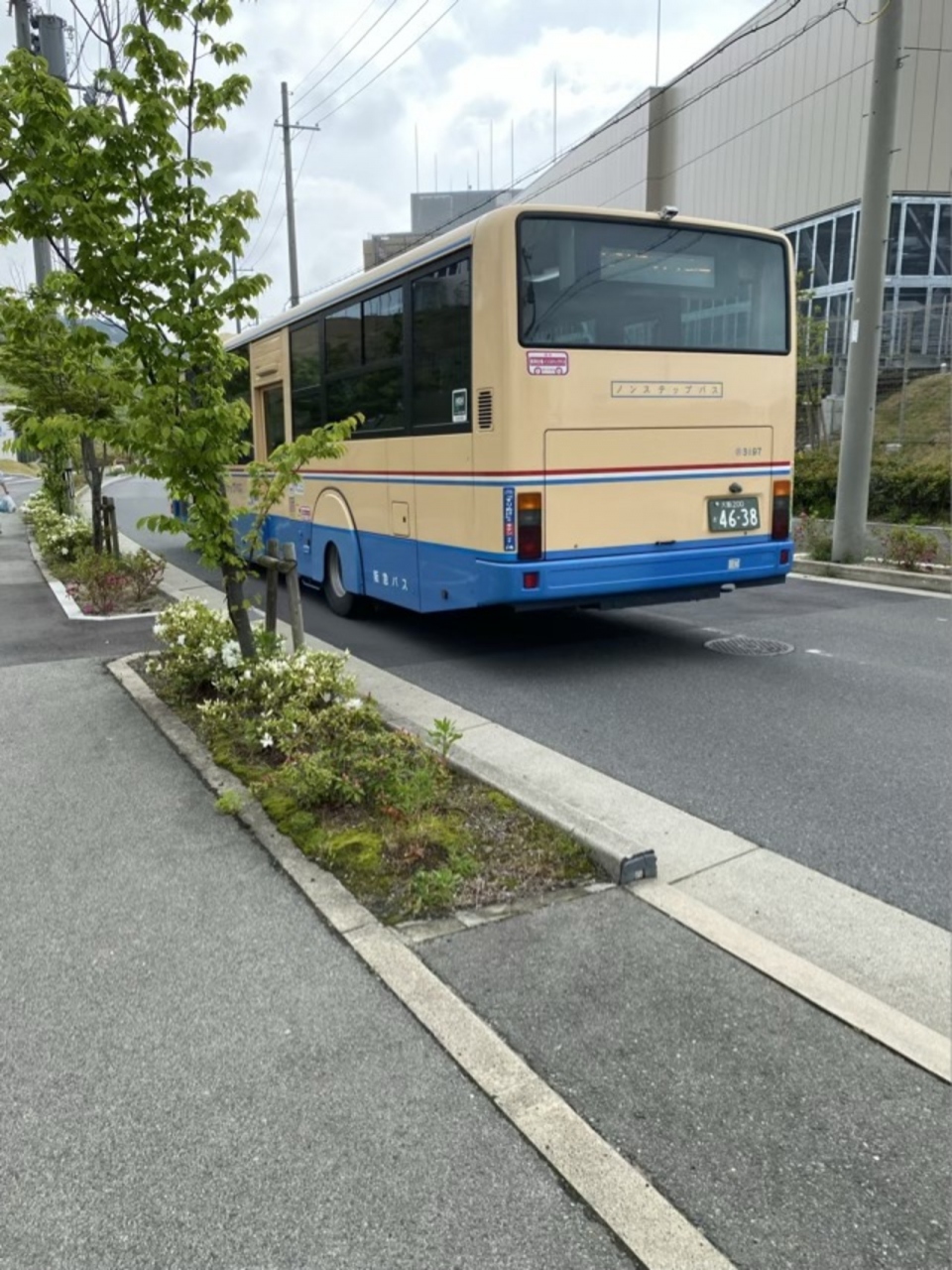 千里中央から彩都粟生北五丁目まで乗車しました。今回乗った21系統は西側から先に山に登って彩都西駅に向けて下っていくので山というか丘陵地帯を見晴らせて爽快でした。東側から先に彩都西駅に寄ってその後に山を登るのが22系統ですね。