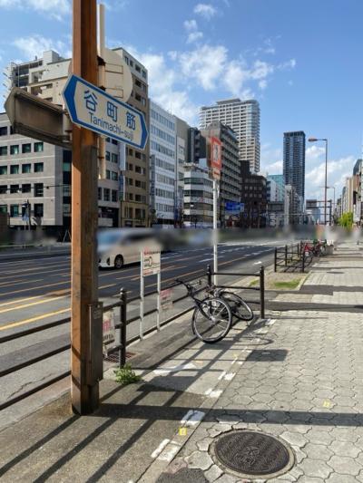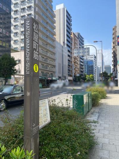 五代友厚像や宇野薬局などを見て回っていると面している道路が5車線ぐらいあって結構広いなと思ったのが松屋町筋でした。なんとなく江戸時代っぽい雰囲気の名前ですね。この辺りは南行きの一方通行ですが大坂の筋と名のつく道路は一方通行が多いのですね。