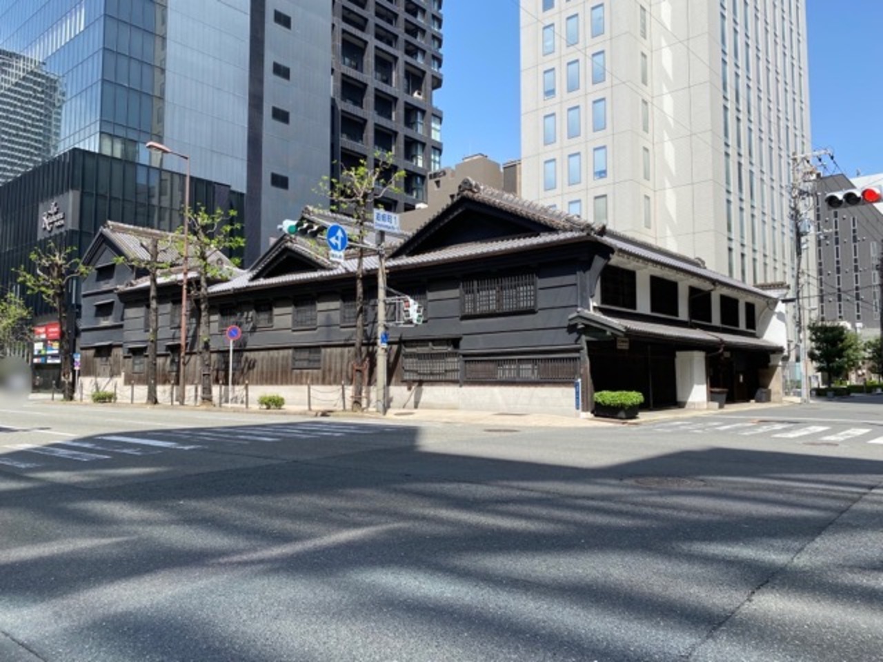 堺筋の道路を歩いていると三角屋根と蔵造りが連なる建物が見えてきました。一面の黒がシックですね。さぞ由緒のあるお宅なのだろうと思ったら旧小西家とは木工用ボンドで有名なコニシのことだそうでびっくりしました。そうと分かると急に親しみが湧いてきました。