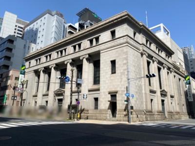高麗橋野村ビルディングの向かいにあります。ぱっと見で日本銀行かなと思ったら建物の端に三井住友銀行の看板がありました。花崗岩で造られていてギリシャっぽい柱が立ち並び入口の上には三角屋根と重厚な外観ですが現役の銀行店舗として稼働しているのは頭が下がる気がしました。