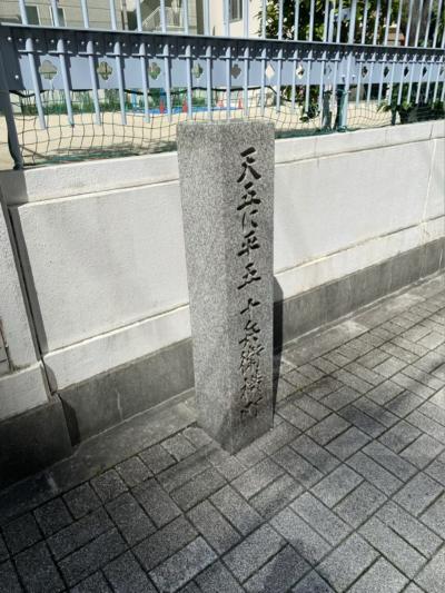 新井ビルから今橋通を東に歩くと小学校の校庭の外側にありました。それぞれ天五と平五という両替商があった界隈なのだそうです。江戸時代だと外貨と交換ではないだろうし両替って何してたんだろうと思いましたが金・銀・銭の貨幣の交換だったようですね。