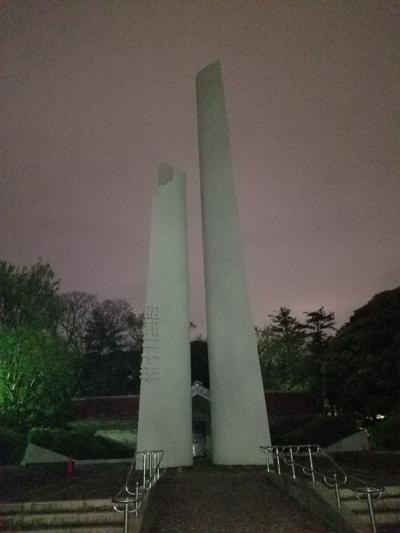 三ツ沢公園にあります。左側の塔に昭和二十年と浮き彫りになっているのが珍しい意匠ですが終戦の年を表していますね。左側の塔は上部が欠けていますが戦争の被害を表したデザインなのでしょうか。戦没者2万人の慰霊塔とのことで改めて平和な時代に生かされているのだなと神妙な気持ちになりました。