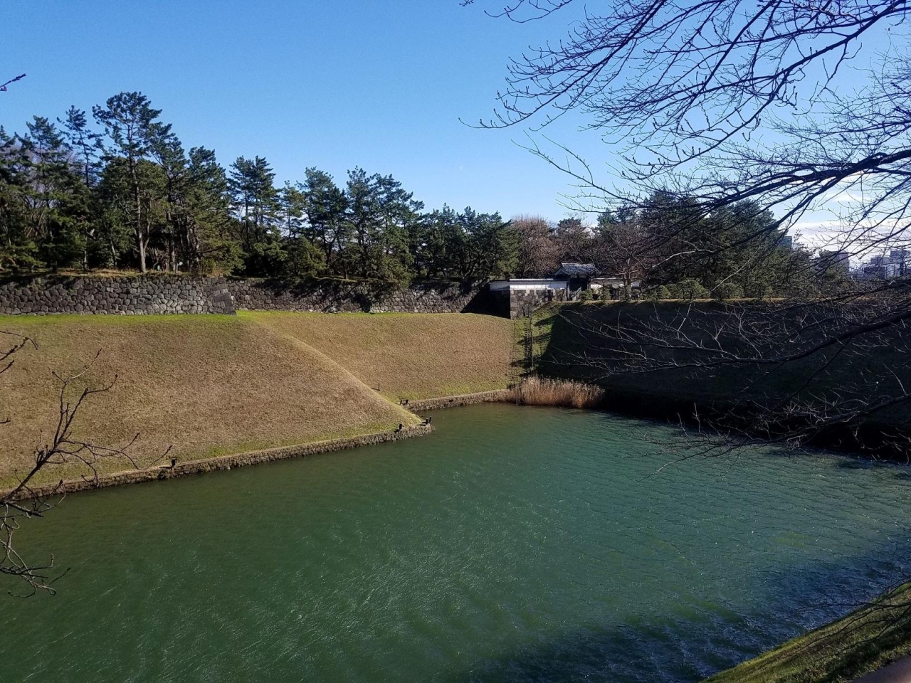 皇居東御苑の北側、平川門と北桔橋門の間のお濠です。北桔橋のあたりから高い石垣が続き、お濠の周りを歩くにつれて幾つもの巨大な石垣が現れる光景は圧巻です。背景には大手町のビル群も見えたりしてある意味、皇居周辺を代表する光景かもしれません。