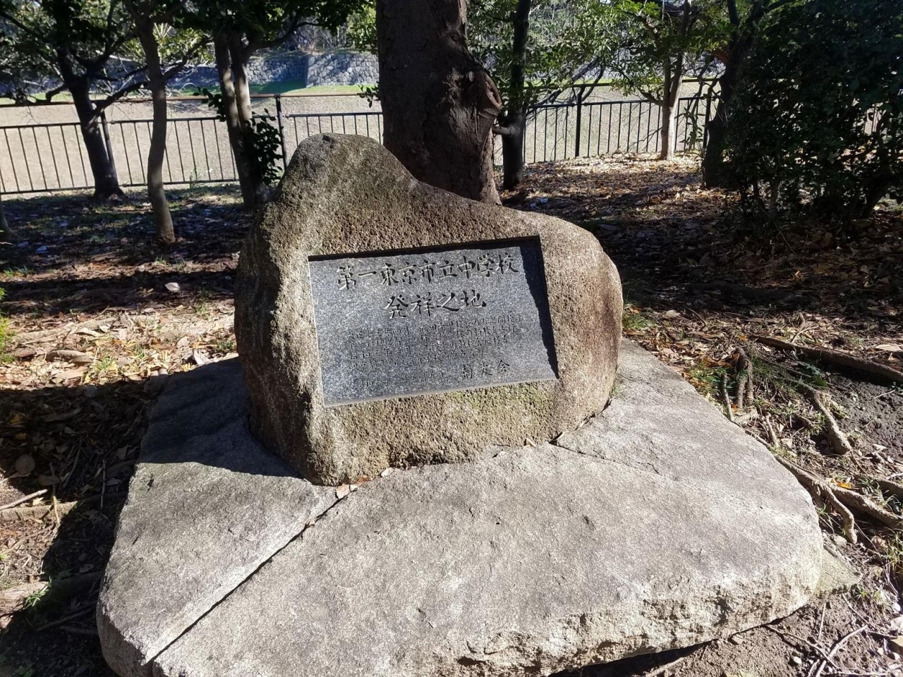 千鳥ヶ淵公園にあります。大正時代に開校された第一東京市立中学校は現在では千代田区立九段中等教育学校として皇居の北側にあります。現在の細長い千鳥ヶ淵公園を見ると当時の学校の様子はどのようなものだったのか気になってしまい印象に残りました。