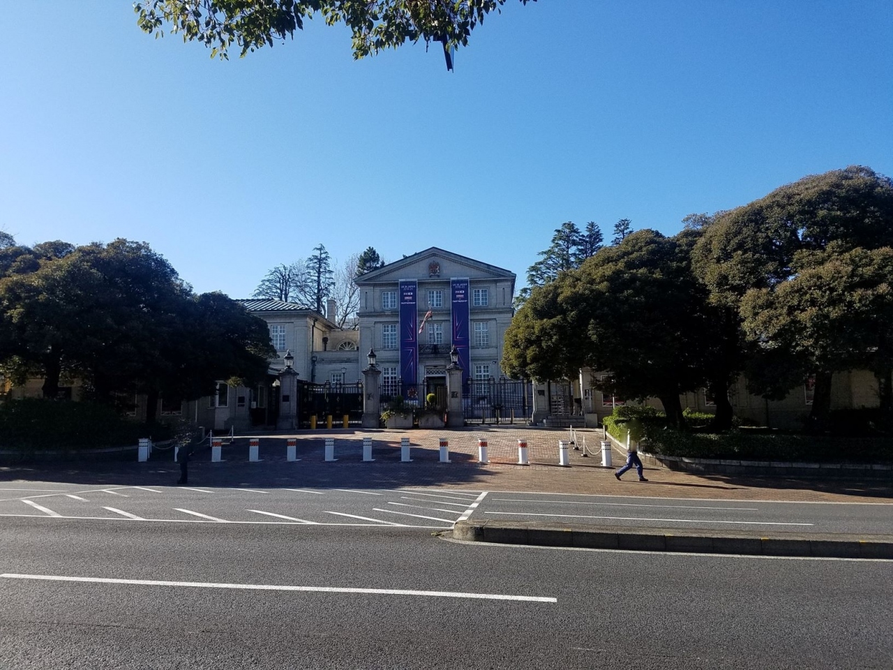 代官町通りを歩いていると煉瓦造りの建物が見えてきました。北の丸公園の南端辺りですね。1910年に近衛師団司令部庁舎として建てられたもので中央と左右両端の三角の屋根が誇らしげです。よく見ると屋根裏部屋みたいな小さな窓もたくさんあって見れば見るほど発見がありそうな見ごたえのある建物でした。