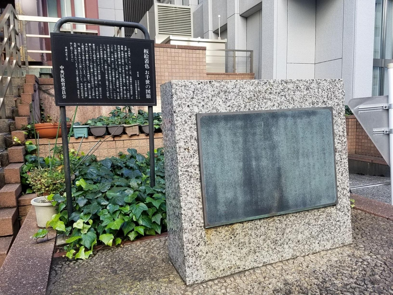 一石橋から近い日本橋西河岸地蔵寺に納められている、芸姑の姿が描かれた板絵です。泉鏡花原作の「日本橋」が上演される際に主役のお千世役を、当時は無名だった花柳章太郎がここ地蔵寺に祈願することで勝ち取ったので後に奉納したものです。花柳章太郎は女形の役者でなんと人間国宝ですね。板絵というのも貴重だと思いますが日本橋界隈の芸能の奥深さが垣間見られて有意義な訪問となりました。