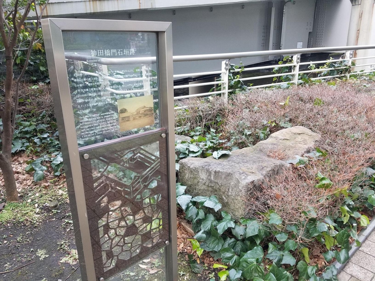 大手町フィナンシャルシティ グランキューブの北、神田橋の袂にあります。そんなにまとまった石垣というわけではないので見逃さないようにしてください。江戸城の門として、竹橋門や和田倉門と同じような櫓門がここにあったのですね。説明版に昔の写真が貼ってあるのはとても良いのですが板が透明で説明が読みづらいのが少し残念でした。