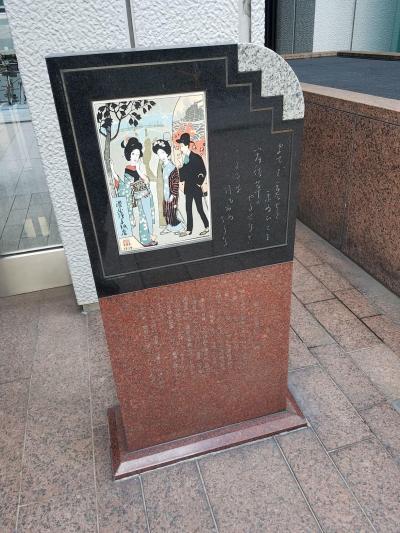 呉服橋交差点近くのみずほ銀行の前にカラフルな石碑がありました。竹久夢二と言えば大正ロマンを代表する画家ですが、この辺りに港屋という店を開いて自身のデザインの版画や絵葉書、手ぬぐいなどを売っていたとのこと。当時の画家が自身の店で販売をしていたというのはあまり聞いたことがなく、確かに画期的なことだったようですね。