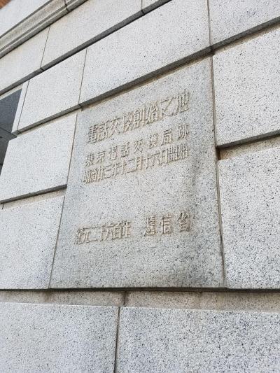 アーバンネット大手町ビルの軒下みたいな所にありました。赤い骨組みみたいなオブジェで最初は公園にある遊具か何かかと思いました。大名小路に面した三菱UFJ信託銀行 信託博物館の右手の壁に電話交換創始の地のプレートが埋め込まれていましたが、その電話交換局がここに移転して東京市外電話局となったそうです。オブジェの基部に説明がありましたが見づらいので気が付く人が少なそうで勿体なかったです。
