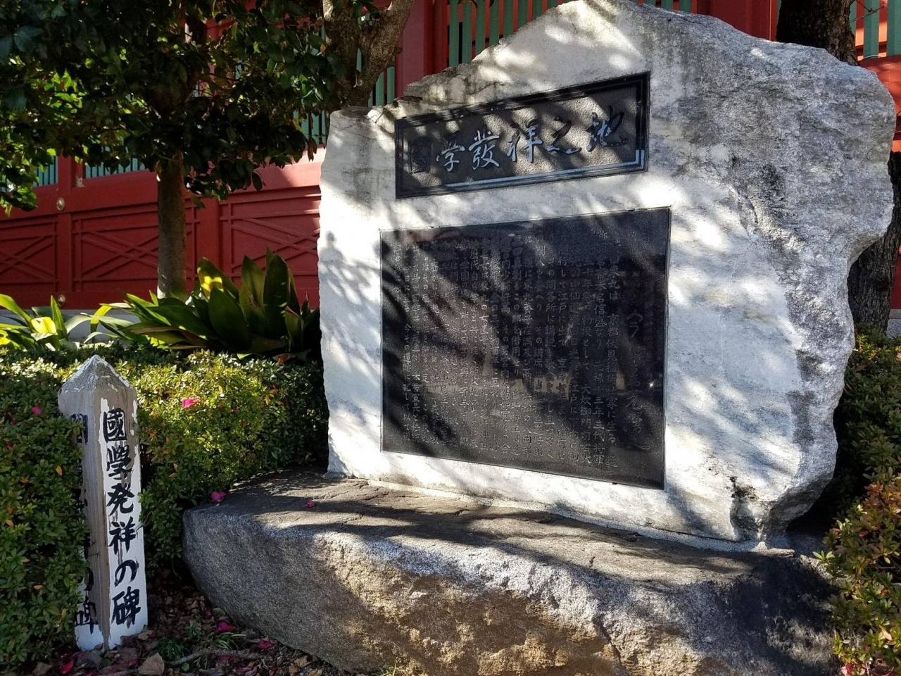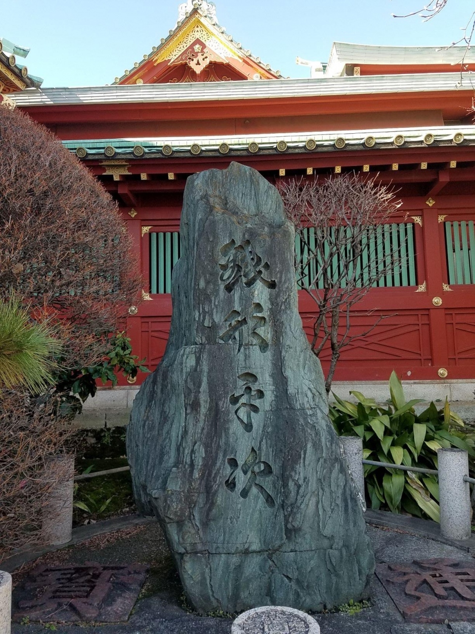 御神殿に向かって右側にあります。江戸時代中期の国学者、荷田春満(かだのあずままろ)が江戸で初めて国学の教場を開いたのが神田神社の社家だったゆかりでここに碑が建てられました。碑文は割と読みやすく、有名な本居宣長の名前も出てくるので是非読んでみて下さい。