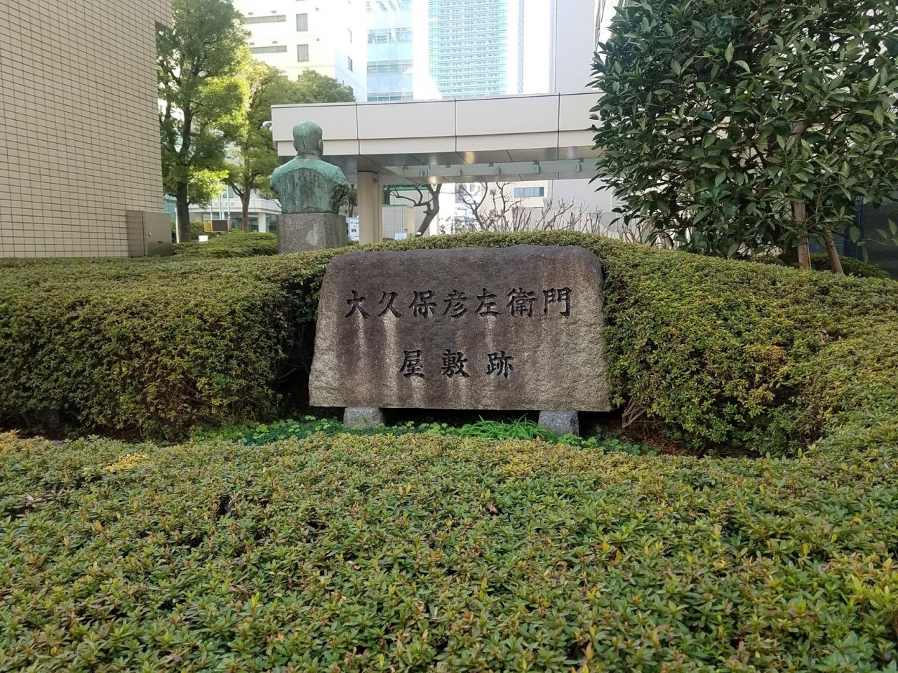 明大通り沿いの杏雲堂病院の植え込みの中にあります。大久保彦左衛門は江戸時代の旗本で、旗本の輿の使用が禁止されると「たらい」に乗って登城したという逸話があるなど、なかなか興味深い人物だったようです。その彦左衛門の屋敷がこの辺りにあったということでしょうが碑には何も説明がないのでちょっと勿体ない気がしました。