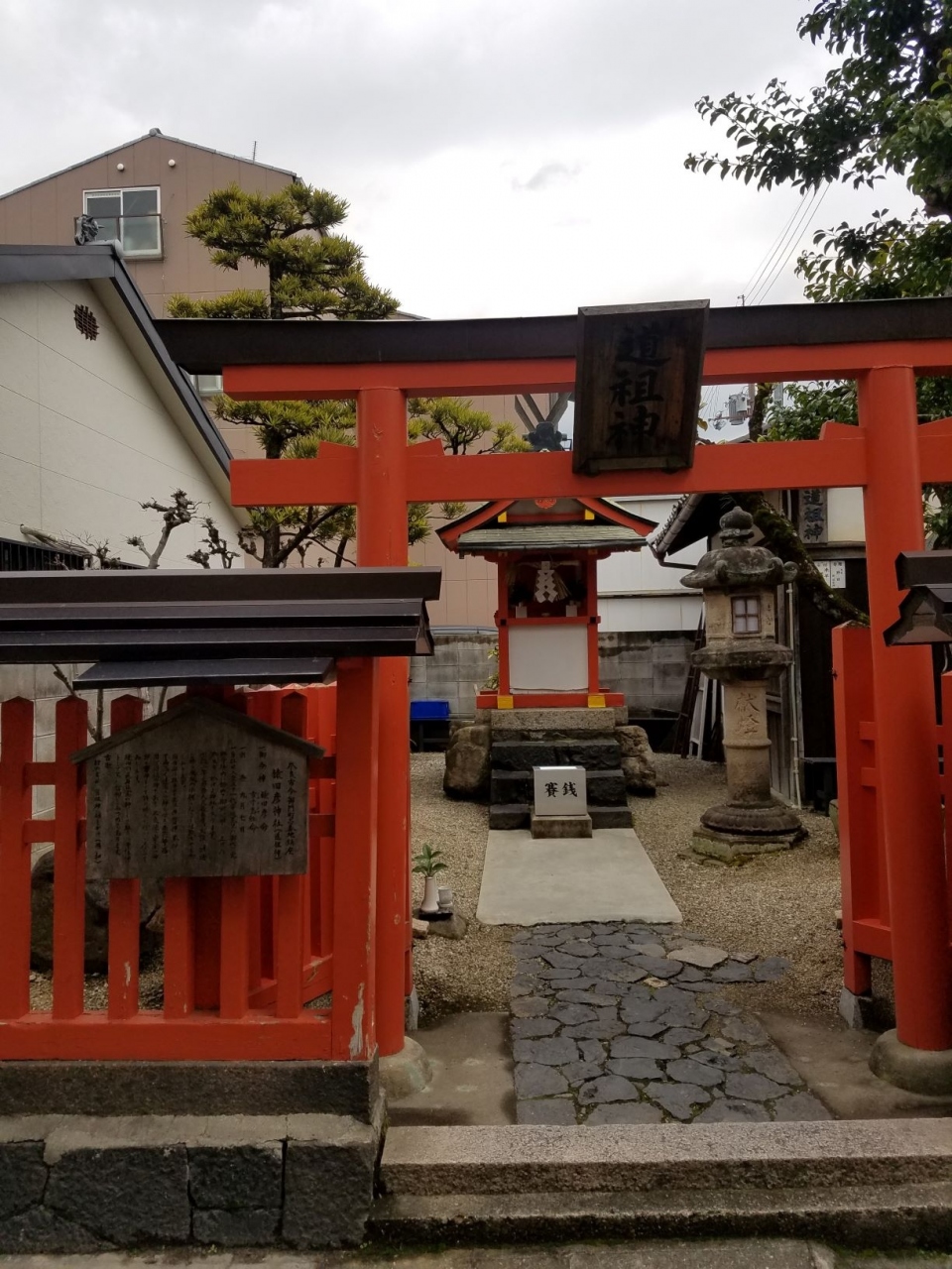 今御門商店街と西寺林商店街が交差するところにあります。扁額に道祖神と書かれた鳥居をくぐると小さな祠のような本殿があります。創建は平安時代に遡りかつては元興寺の境内にあったそうです。前の道は狭いのですが人通りは多く地元の人が日常的にお参りしているかんじでした。