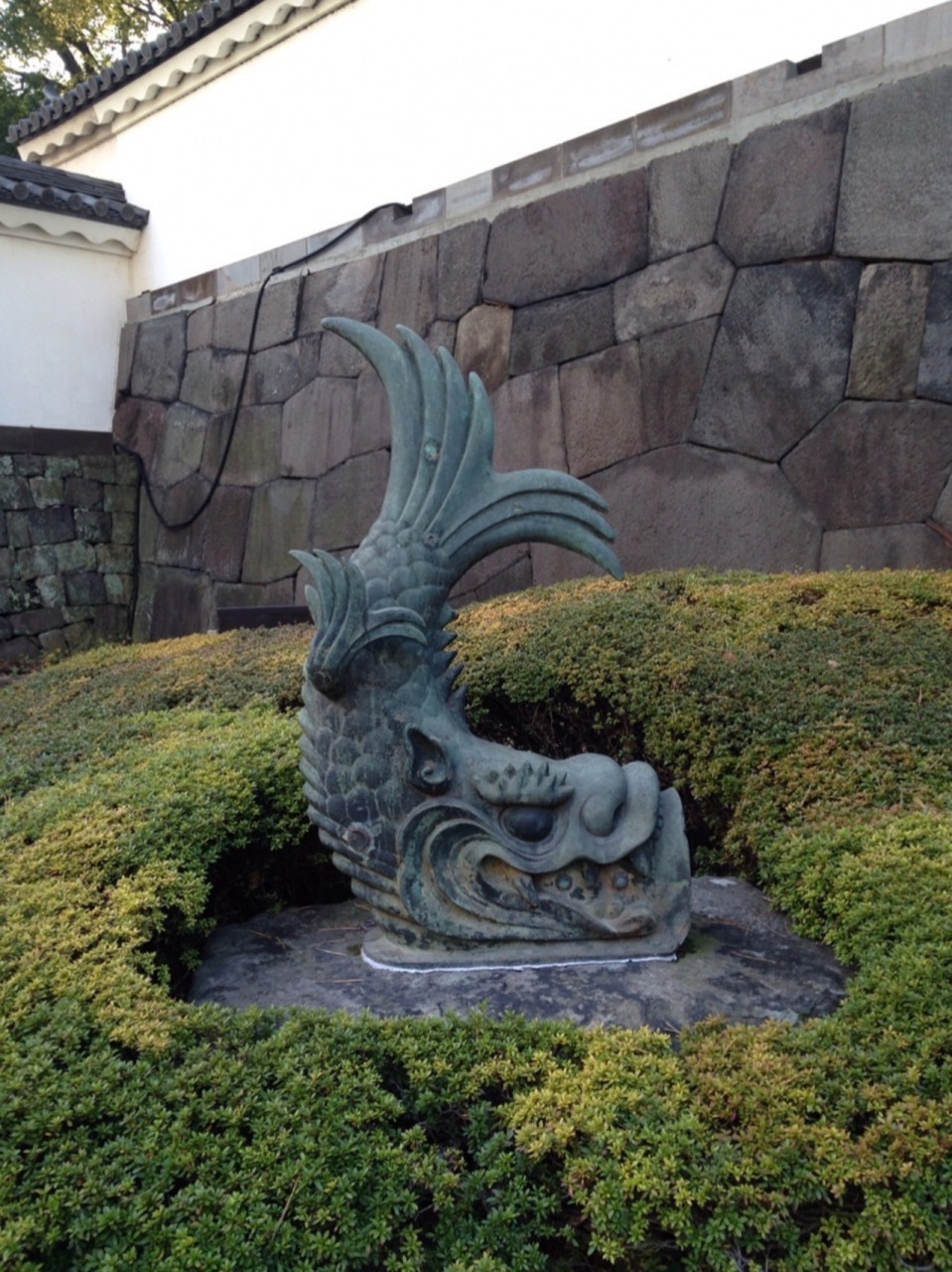大手門を入ったところに展示されています。大手門を構成する旧渡櫓の屋根に飾られていた鯱で1657年の明暦の大火で渡櫓が消失した後の再建時に製作されたものと推定されています。現在の渡櫓の屋根にも鯱がありますがそれよりもずっと古いものがこうして間近で見られるのは貴重ですね。
