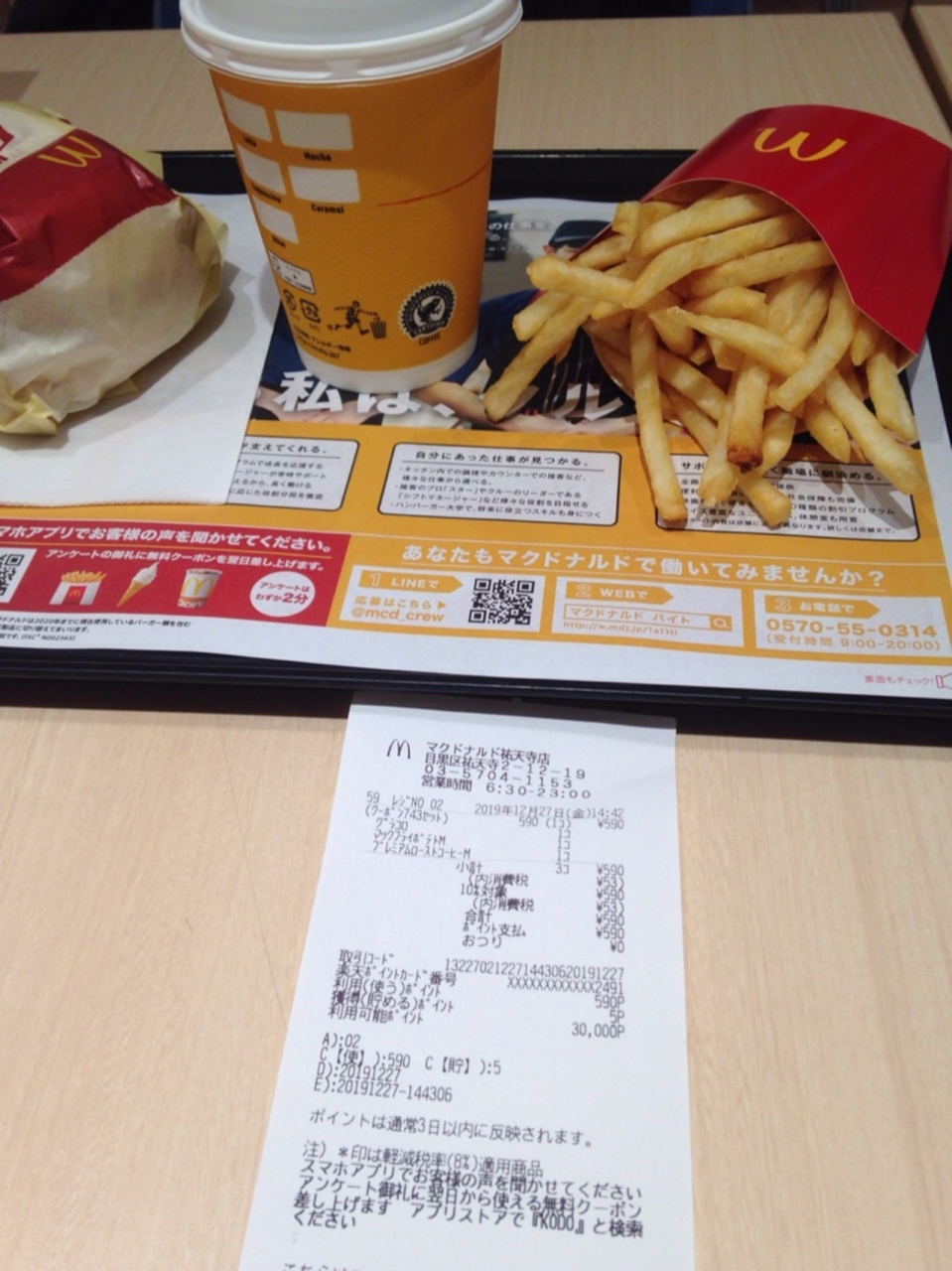祐天寺駅の東側にあります。間口が狭いので1階の注文カウンターは混みぎみですが2階は奥まで割と席がありました。注文カウンターに持ち帰り用に袋の底に敷くやつが積んであったので持ち帰りにする人も多いのだと思います。