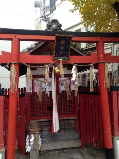 梅田エストの東側にあります。なんとも珍しい名前ですが元は農耕の神で御神体の巨石が淀川の決壊を歯止めしたことが由来とのこと。本殿前にあるなで石はその巨石のかけらで撫でると歯痛が和らぐと言われ、さらに歯医者さんなど歯に関わる様々な職業の人からの信仰も厚いそうです。