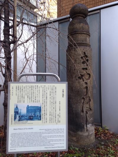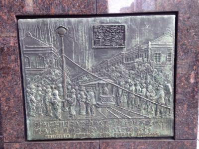 中央通りとマロニエ通りの角、カルティエのビルの壁にありました。東京銀座通電気燈建設之図とあり明治15年にここで初めてアーク灯を点けて不夜城を演出したとあります。日本初の電気街灯なのに、ガス灯通りに対抗してアーク灯通りとでもしないと知名度が上がらなそうです。