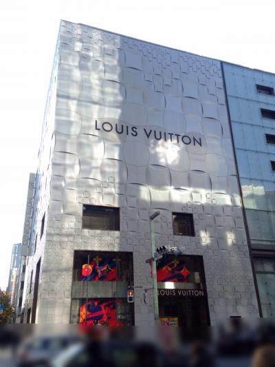中央通りとマロニエ通りの角にあります。外観がヴィトンの財布などで見られるような柄になっていますが8階建ての松屋銀座の一部でありヴィトンは1階から3階までです。ライトアップするとまた違う印象になるとのことで夜にも足を運んでみたいですね。