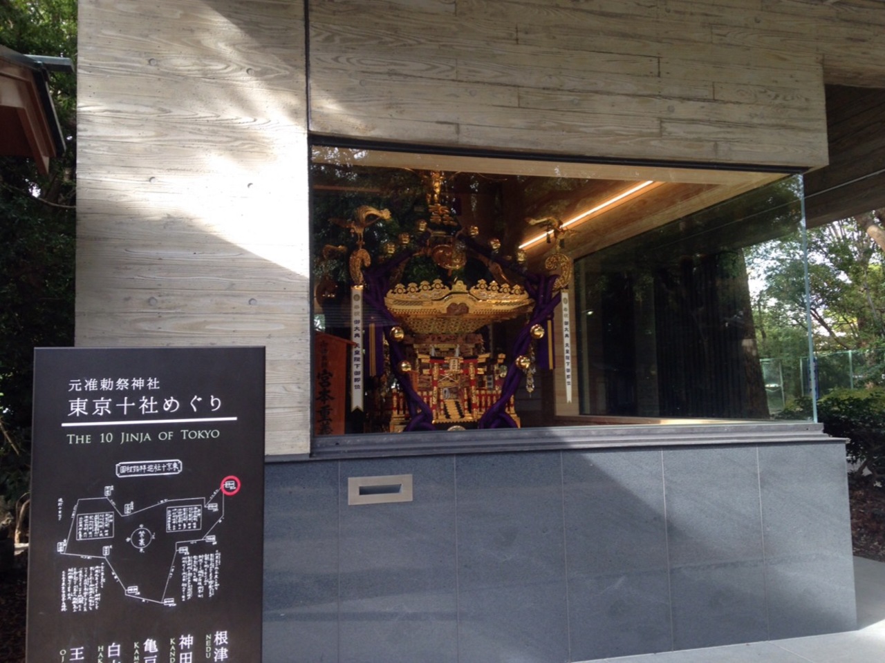 王子駅の北口から音無親水公園を歩き始めて右手の階段を上るとありました。紀州から王子大神を勧請したもので王子の地名の由来にもなったそうです。例祭で使われそうな金色のお神輿が見やすいガラス張りの建物に展示されていて見所が多かったです。