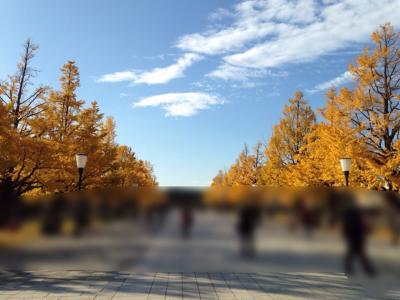 日比谷通りを北上してきて出会いました。東京駅から皇居の和田倉門に至る幅の広い道です。両側に黄葉した銀杏がずらりと並び、とても美しい光景でした。皇居に近いこともあり警備も厚いので安心してゆったりと歩けました。
