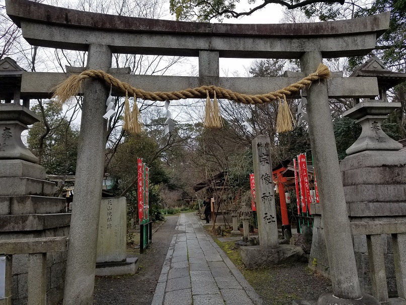 京都御苑内の近くにある宗像神社の境内社です。名前から想像できるように観光業界関係者によって近年に建てられた神社で石柵にはホテルや旅館の名前が見られました。ただ、業界の発展だけではなく道案内の神様として観光客の安全息災を祈願しているとのことなので、観光客がお参りするのも良いと思います。